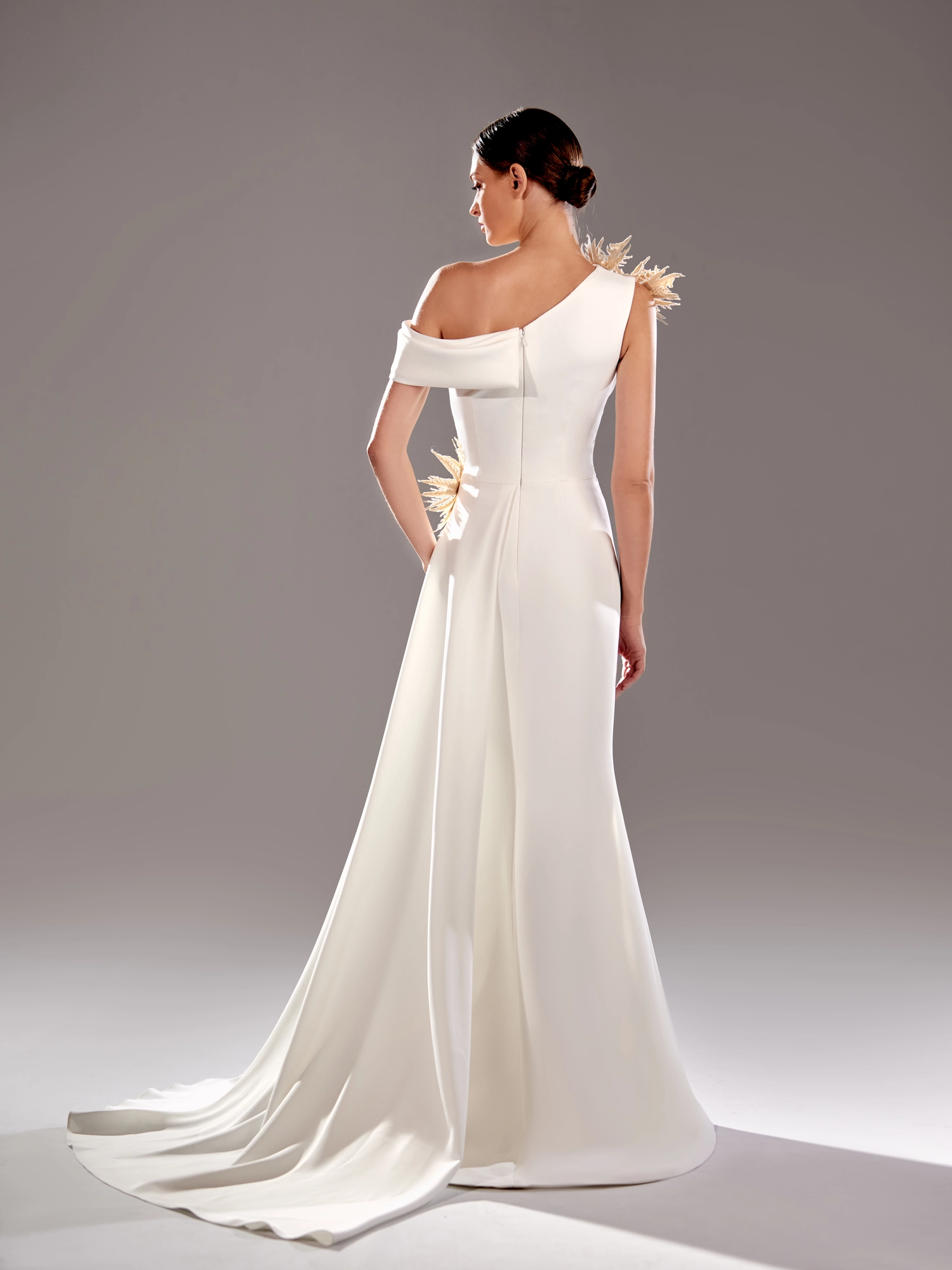 SS 88-Off Shoulder Satin With Beads Mermaid Skirt