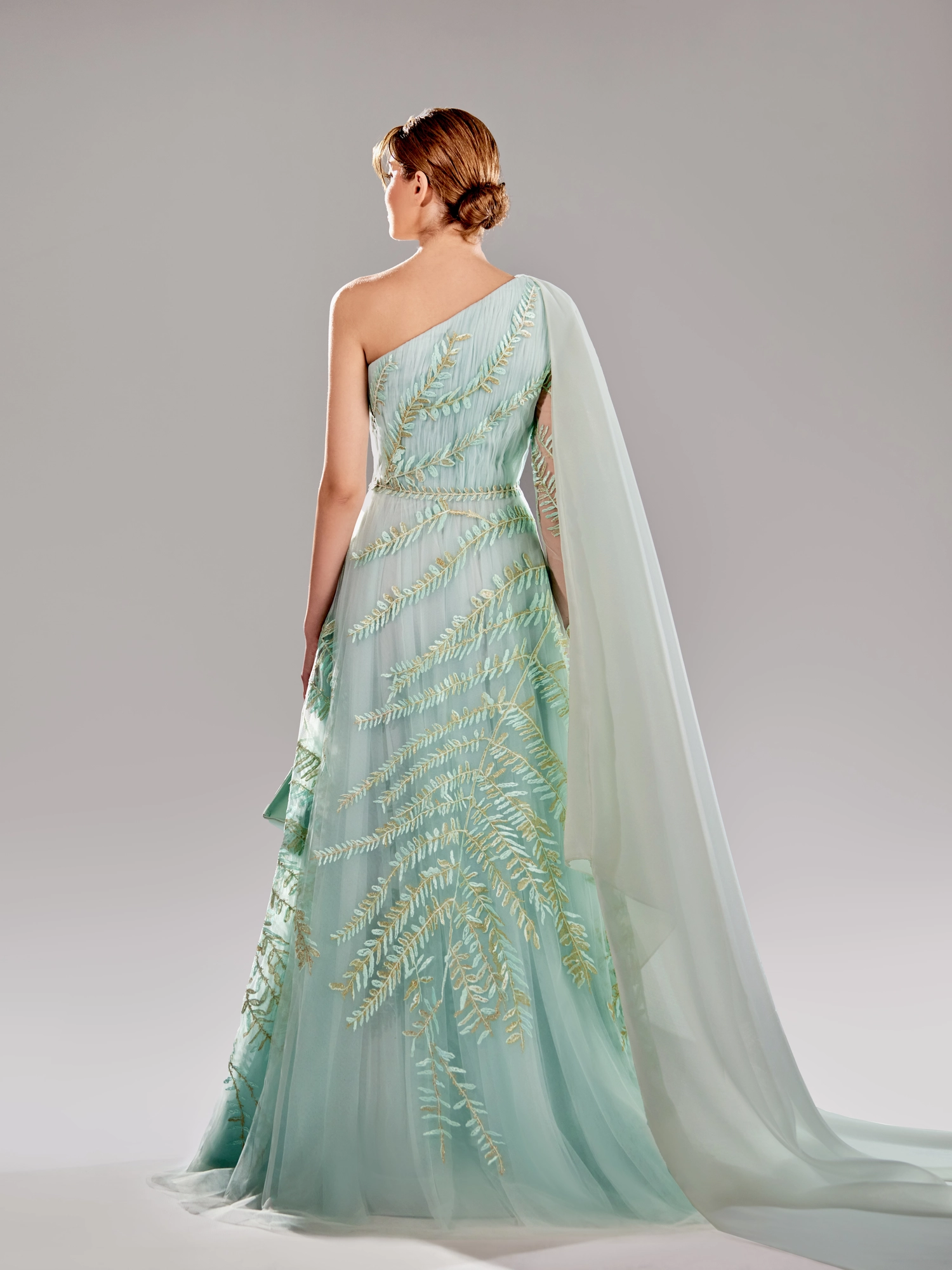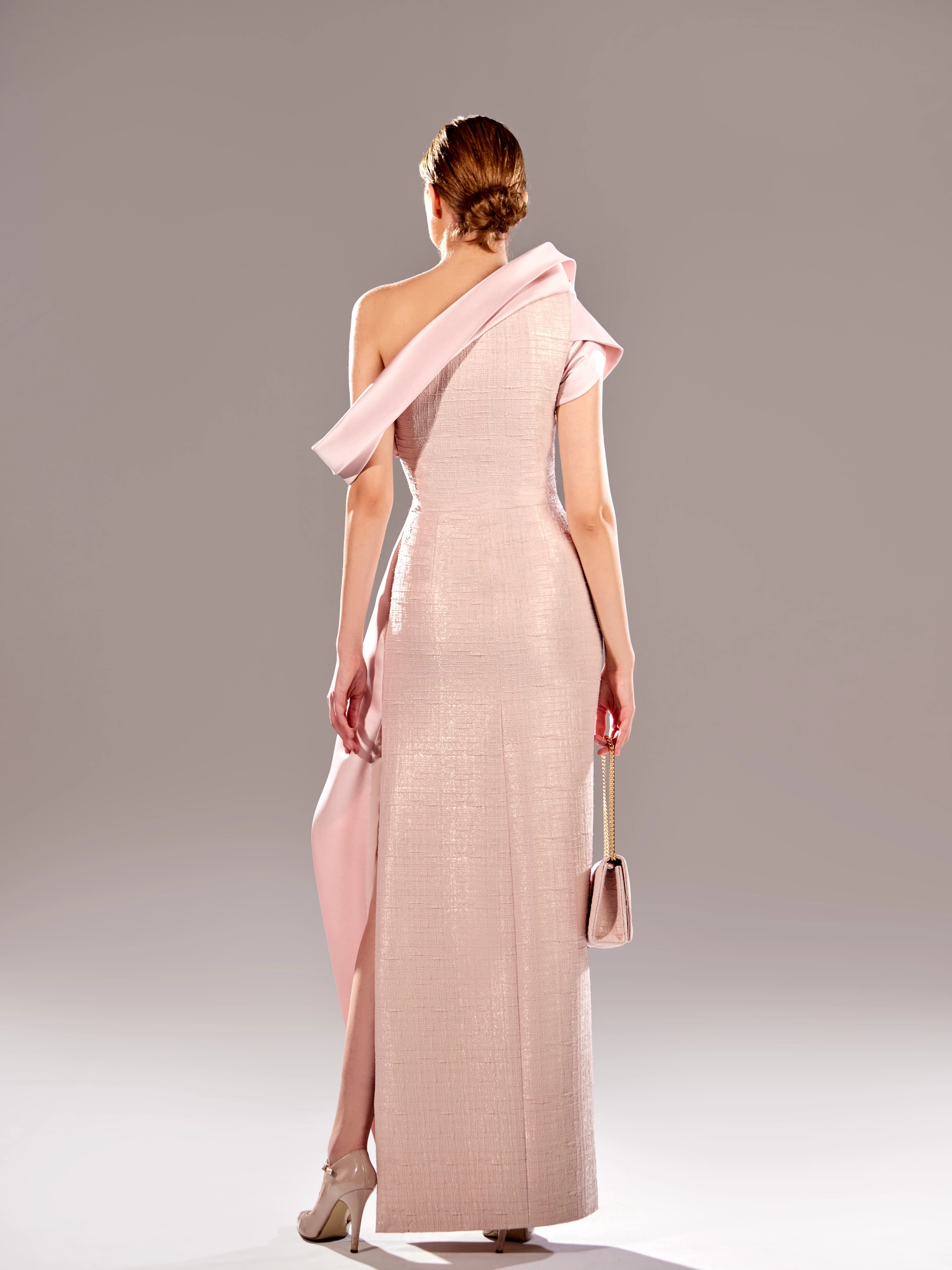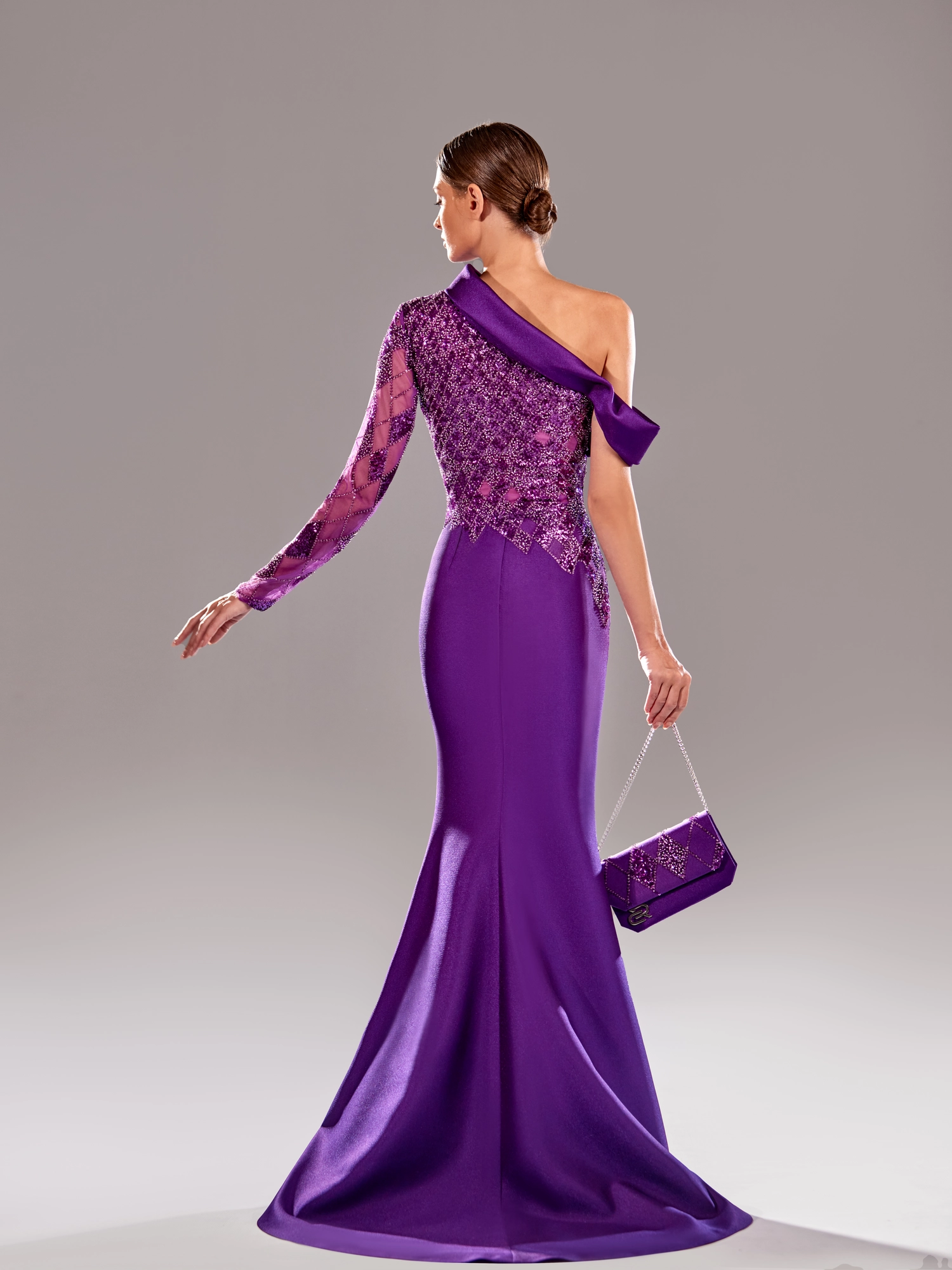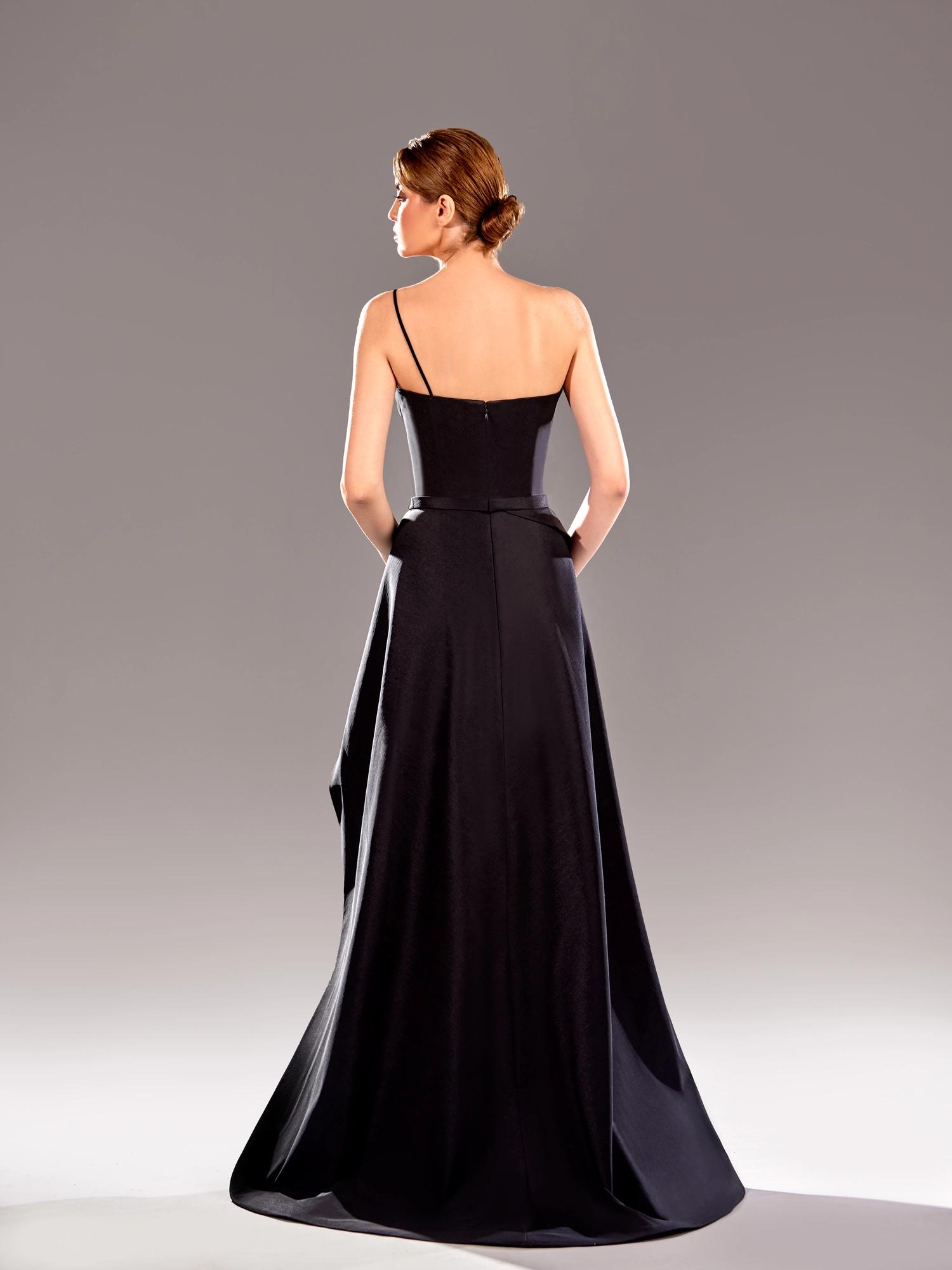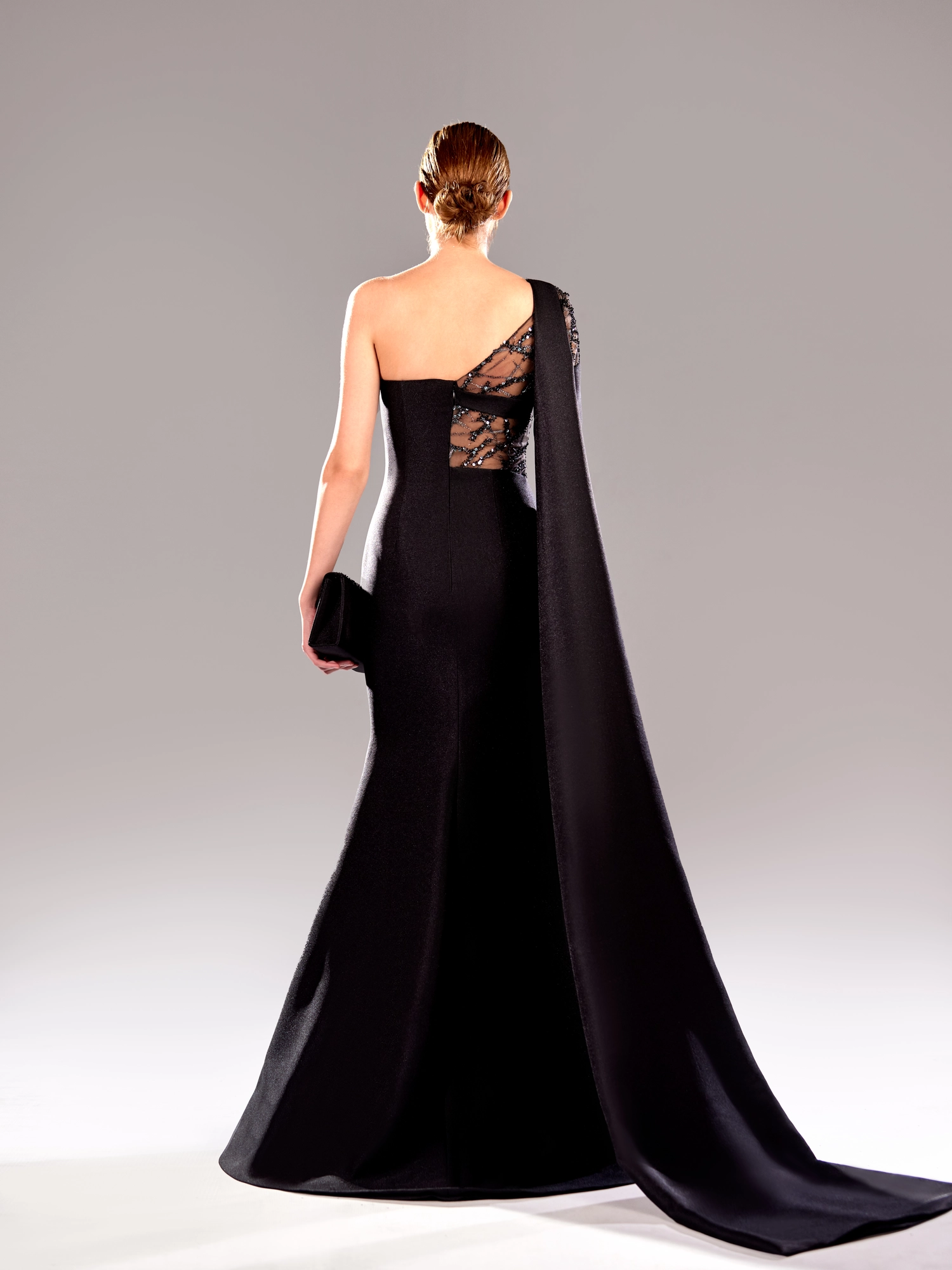 SS 108- Faille Tesla One Shoulder With Cap With Beads Silver And Dark