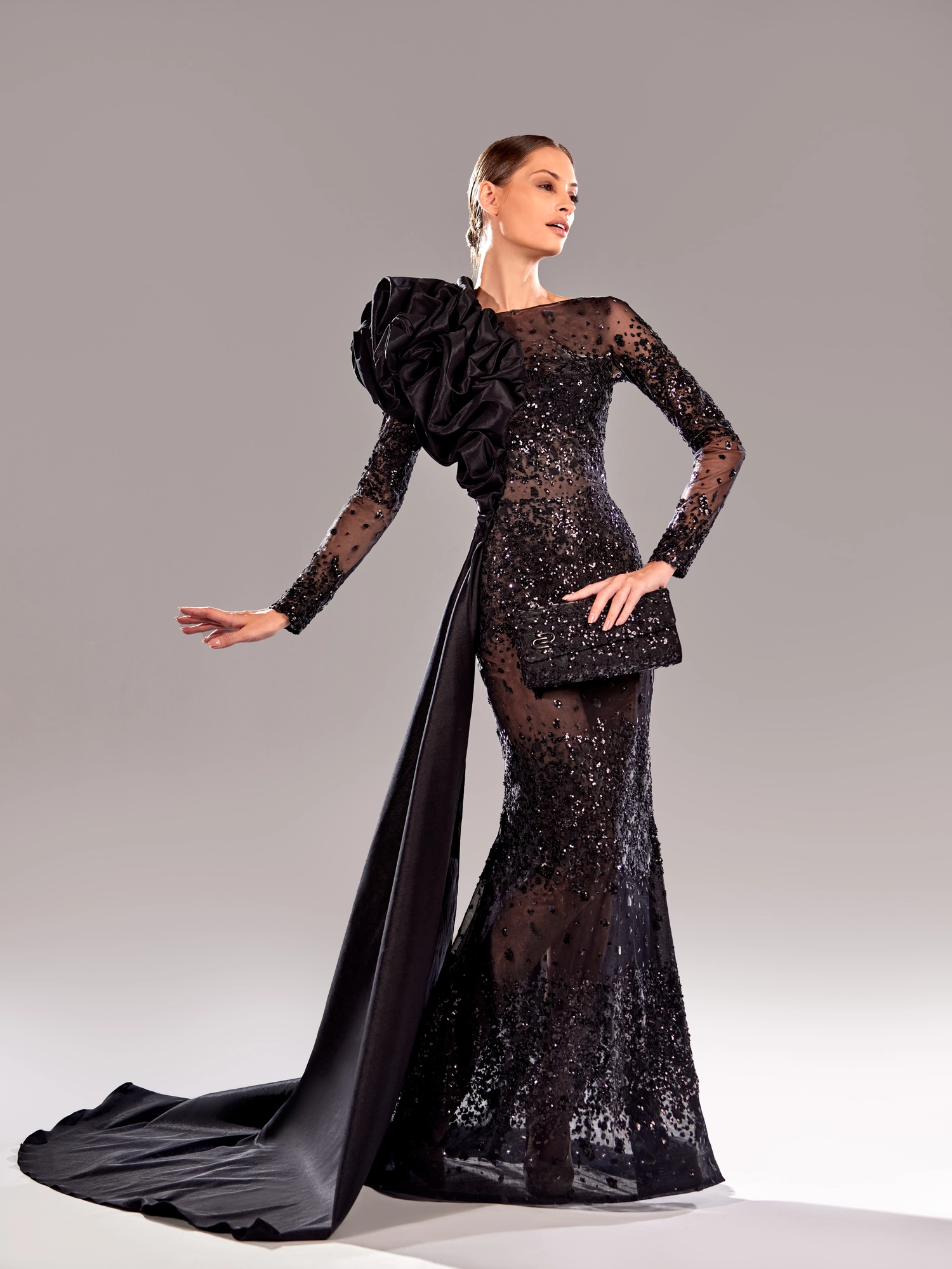 SS 106- Long Dress With Black And Silver Embroidery Skirt