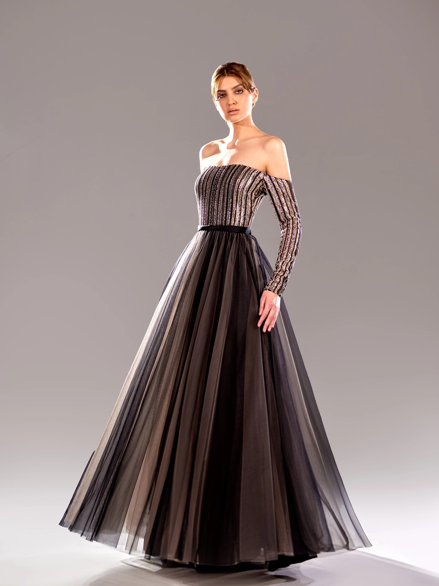 SS 107- Off Shoulder Beads With Wide Tull Skirt